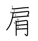 月(肉)(육달월 변(고기 육))을 부수로 하는 총 8획의 한자이다. 위쪽은 사람의 한쪽 어깨이고 아래는 사람의 몸이다. 이들의 조합으로 어깨를 나타낸다.